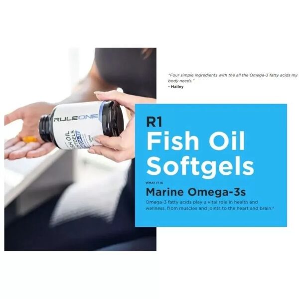 R1’s Fish Oil Softgels provide 1,000mg fish oil, yielding 180mg EPA and 120mg DHA. Our bodies can’t effectively produce these essential nutrients, so they must be obtained from seafoods or supplements made from marine sources.^